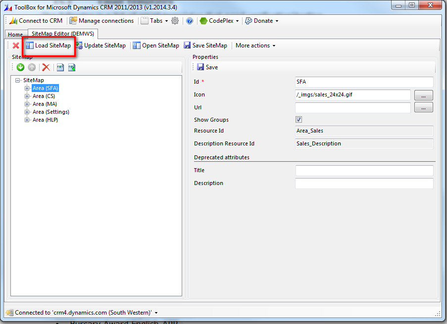 4. Scroll Down to Sitemap editor and let it open. Click LoadSiteMap